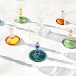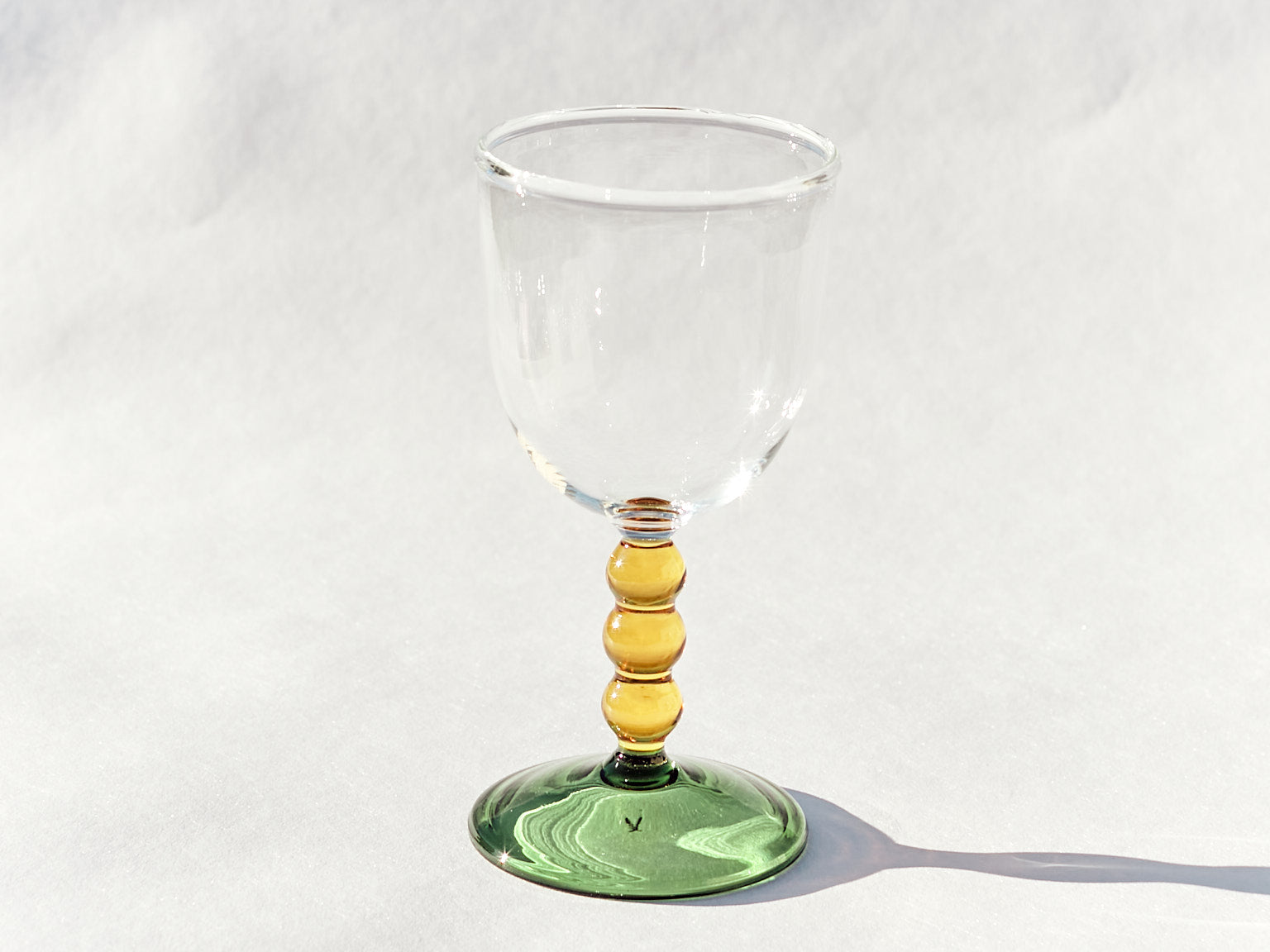 Hand Blown Circle Stem Wine Glass in Yellow/Green