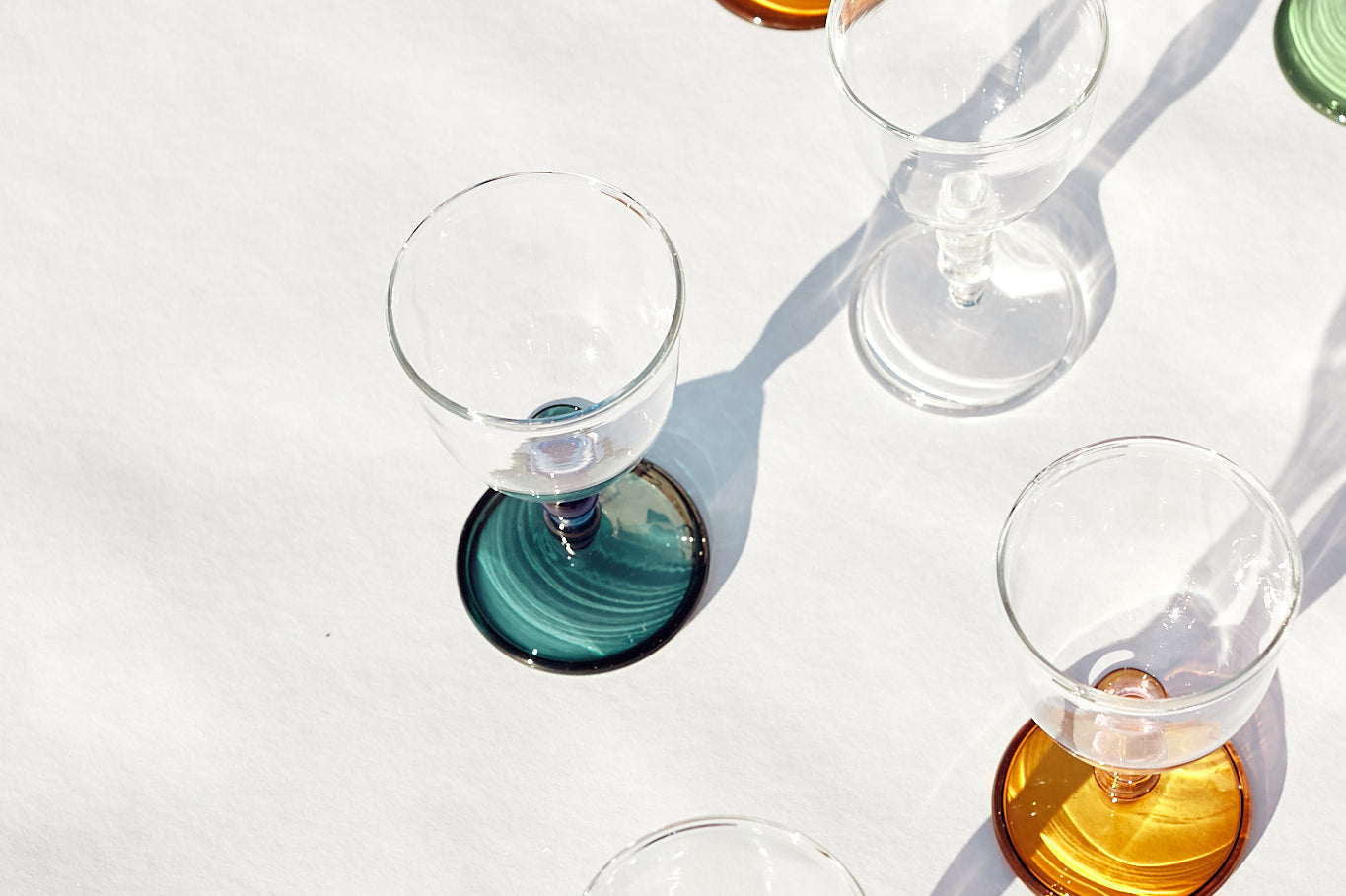 Elevate your wine experience with our circle stem wine glasses. Each glass is a work of art, individually mouth-blown and carefully crafted by skilled artisans from durable borosilicate glass. Charmingly wobbly, it's not just a glass - it's an invitation to savour life's special moments.