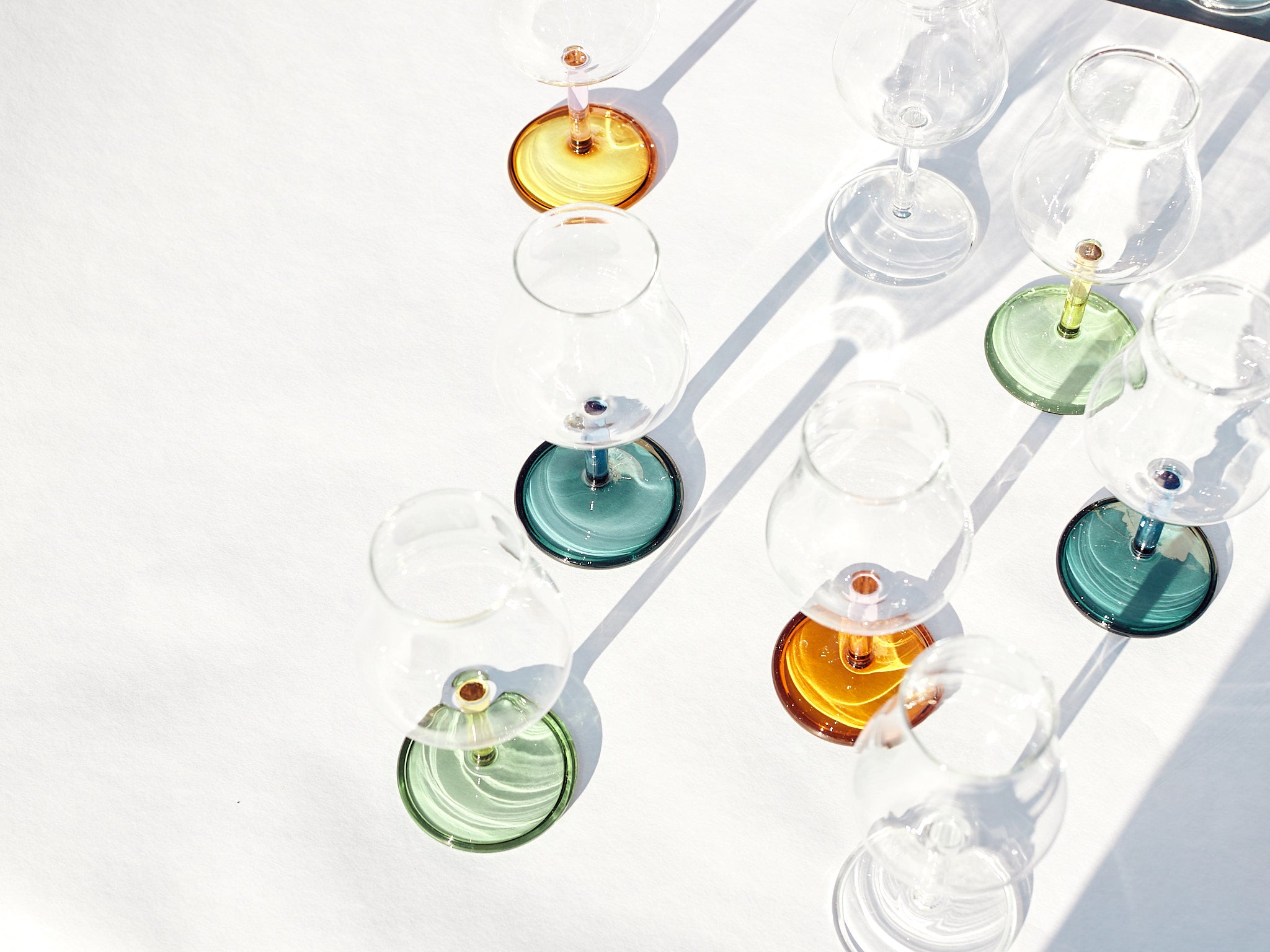 With its bulb-shaped design and colour-blocked stem, this wine glass strikes the perfect balance between elegance and functionality. Whether you're unwinding with your favourite red or savouring a refreshing white, our perfectly imperfect wine glasses ensure that every sip is a moment to cherish.