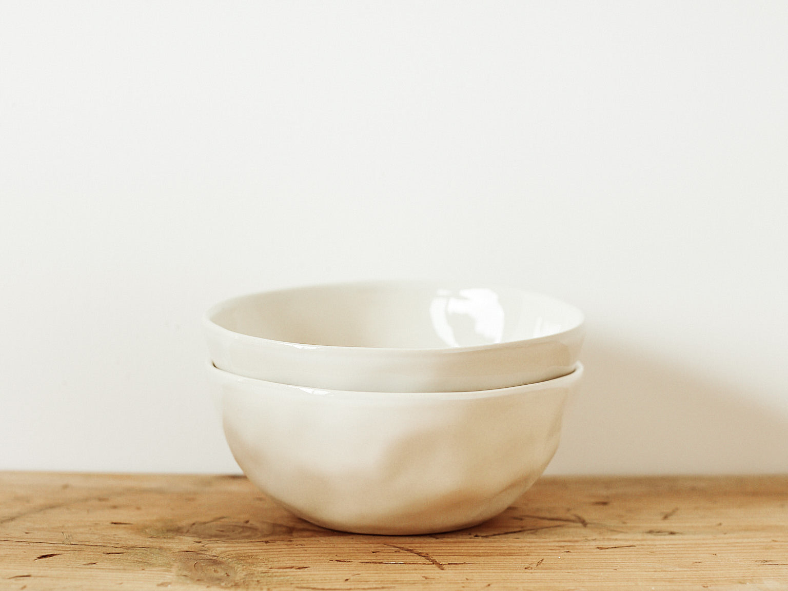 Shaped to sit comfortably in the palm of the hand, our handmade cereal bowl features a subtle hammered finish to be tactile to hold and reflect the light. Handcrafted from our stoneware blended clay, this is an everyday staple that will be used time and time again.
