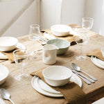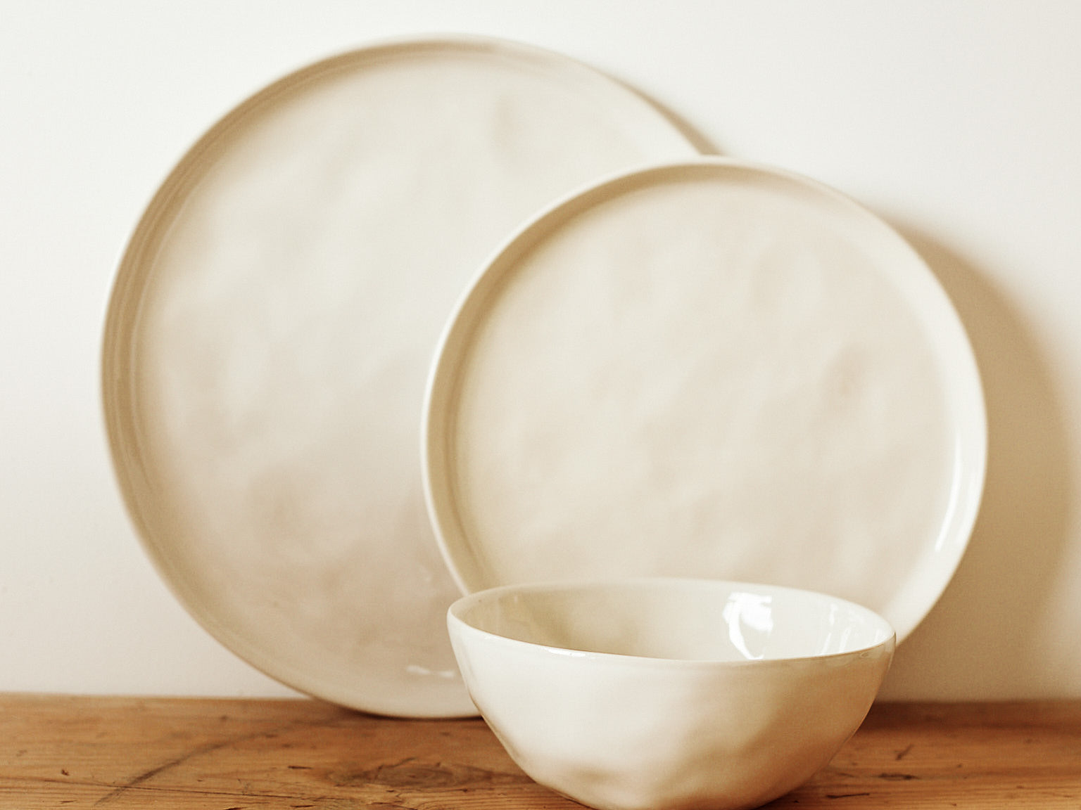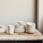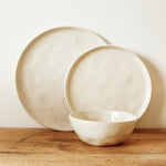 Simple yet with a handcrafted edge, our pottery place settings include a large plate, small plate and everyday bowl. Handcrafted with a subtle hammered finish, each piece is tactile to use and reflects the light. Create a inviting table setting for both everyday use and special occasions - our dinner sets are designed to be versatile as well as timeless, making mealtimes into memories.