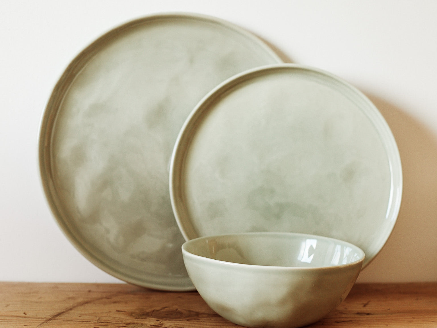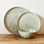 Simple yet with a handcrafted edge, our pottery place settings include a large plate, small plate and everyday bowl. Handcrafted with a subtle hammered finish, each piece is tactile to use and reflects the light. Create a inviting table setting for both everyday use and special occasions - our dinner sets are designed to be versatile as well as timeless, making mealtimes into memories.