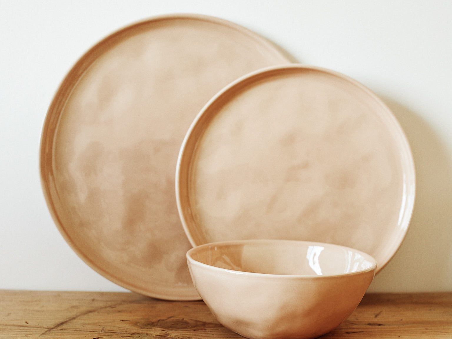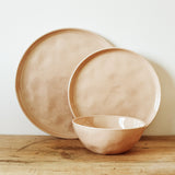 Simple yet with a handcrafted edge, our pottery place settings include a large plate, small plate and everyday bowl. Handcrafted with a subtle hammered finish, each piece is tactile to use and reflects the light. Create a inviting table setting for both everyday use and special occasions - our dinner sets are designed to be versatile as well as timeless, making mealtimes into memories.