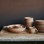 Featuring all our three serving sizes ranging from large to small, our serving bowl set is versatile and doubles as a display piece. The subtle hammered texture makes the pottery tactile to hold whilst reflecting the light.