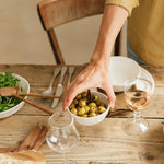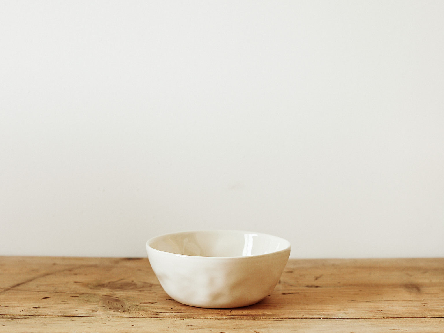 Our small serving bowl is versatile for snacks such as olives and nuts, hummus, guacamole, serving chocolates with coffee, for a decadent scoop of ice cream, or as a simple sugar bowl along with our dimpled jug and set of mugs. Designed for everyday use, mix and match this size with our other pieces to create your own custom table setting.