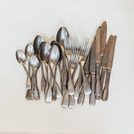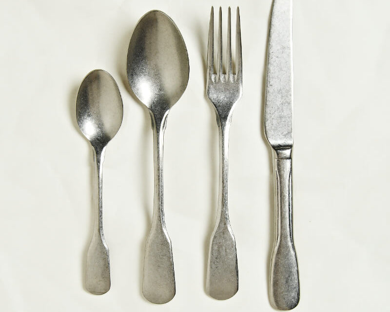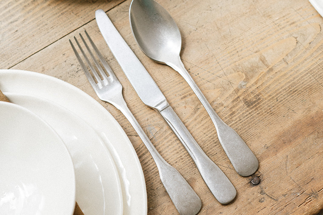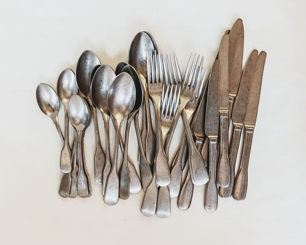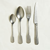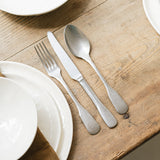 Our vintage style cutlery is forged from stainless steel, safe for use in the dishwasher. The unusual aged finish is created by gently tumbling the flatware, meaning that there is no need to polish them - they will increase in beauty with use.